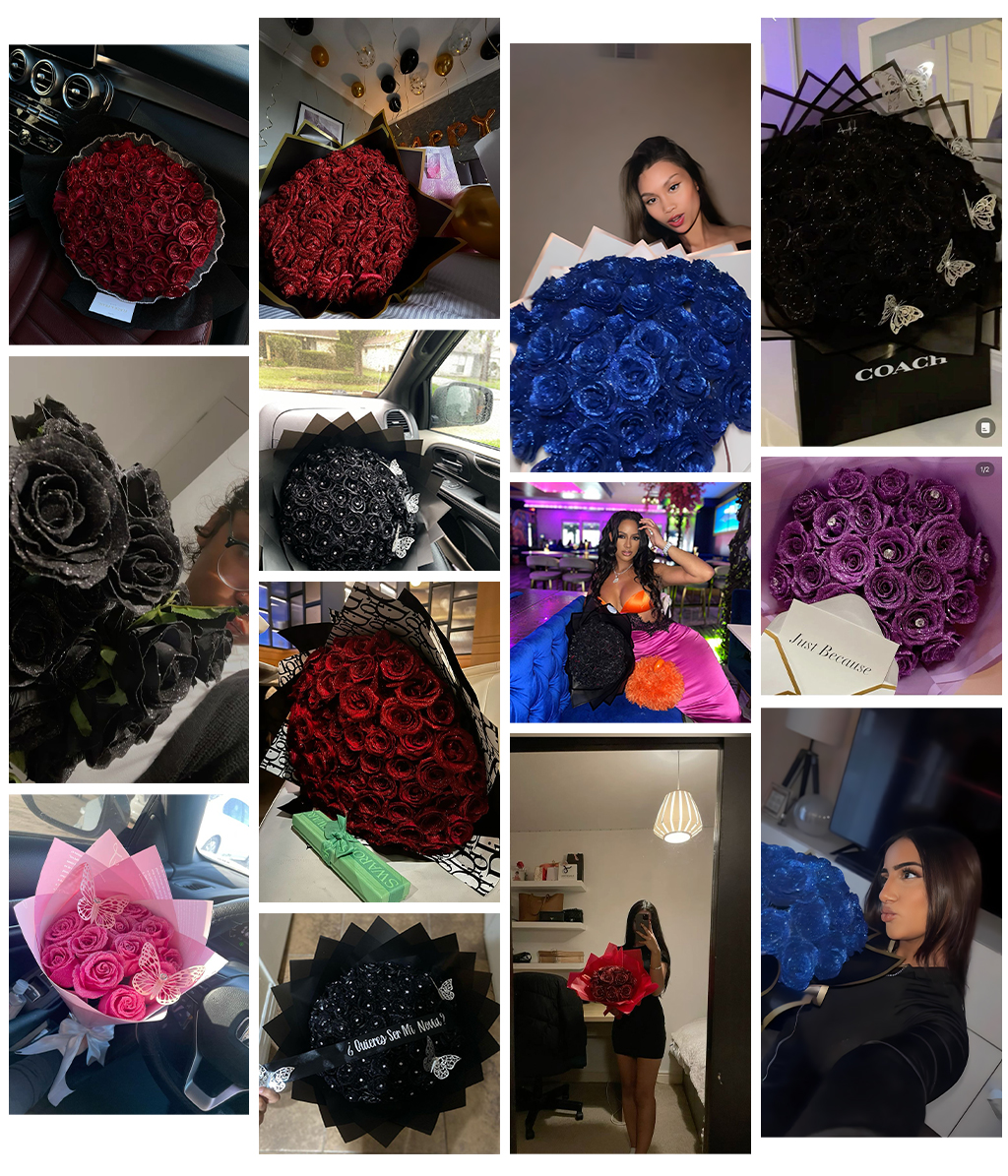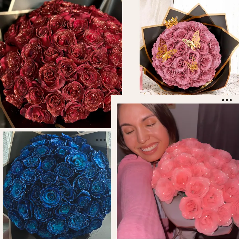 ✨ Glittering Roses: Our premium roses are adorned with a delicate layer of glitter, adding a touch of magic to each petal. The subtle shimmer creates an ethereal effect, making this bouquet a truly unique and unforgettable gift.
